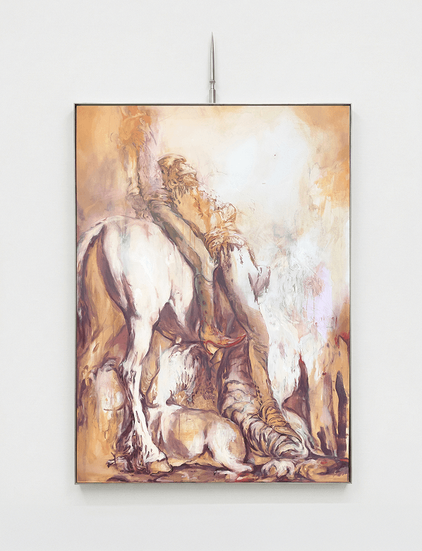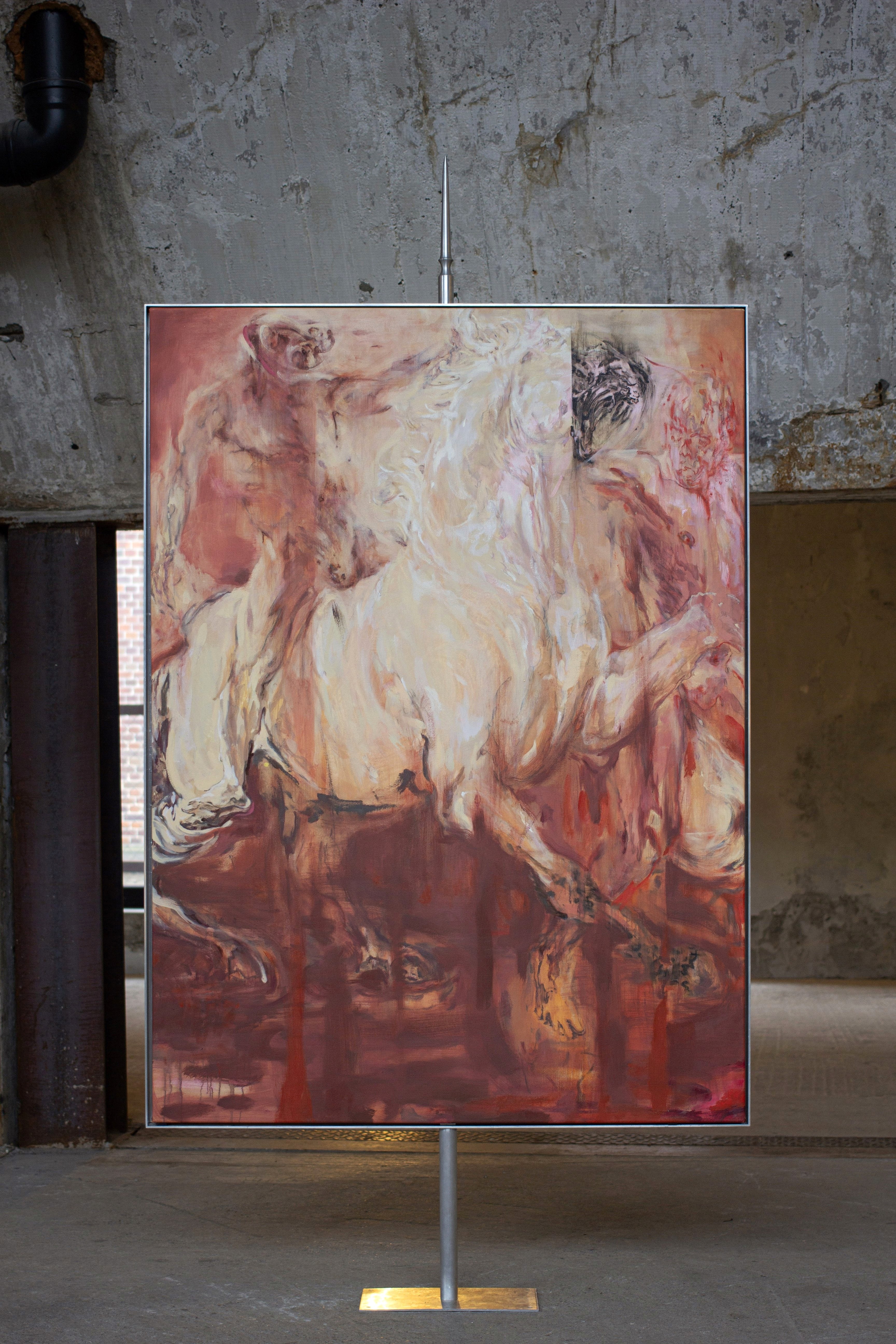 Oil on canvas, aluminium frame, aluminium spear