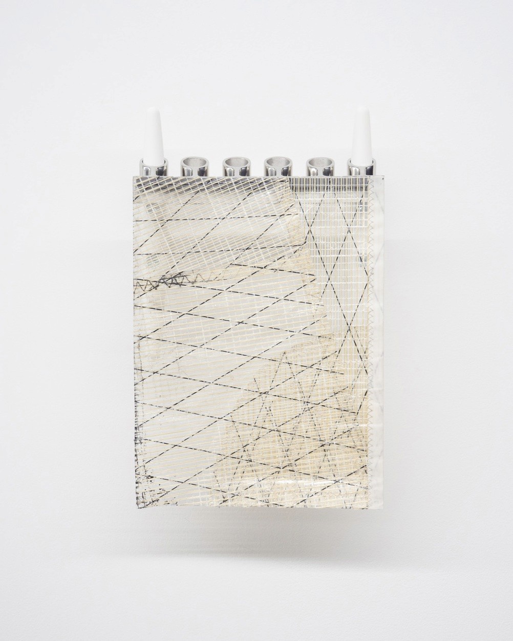 Recycled carbon fibres from former airplane parts as canvas and recycled paraffin wax as paint. Aluminium artist frame.