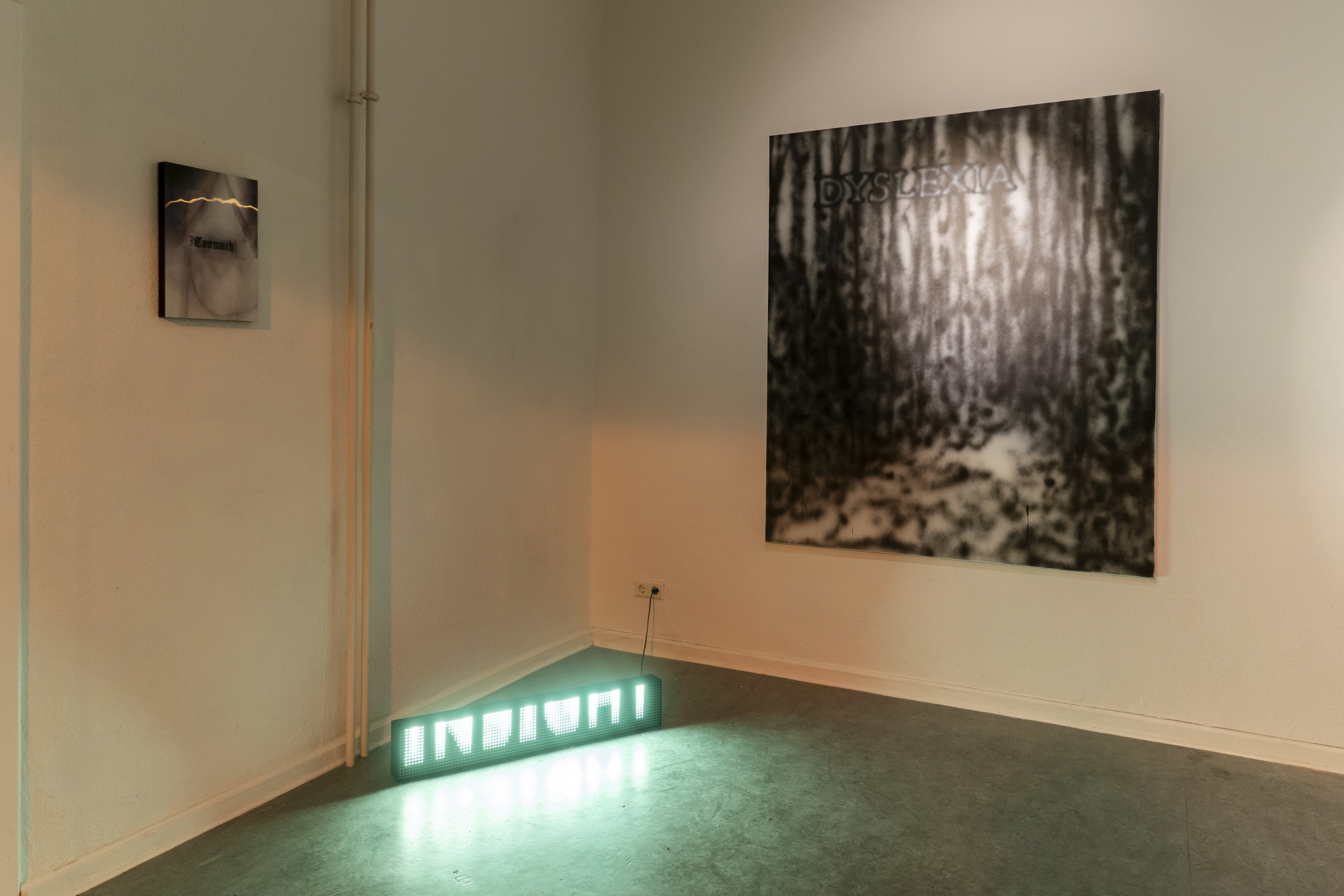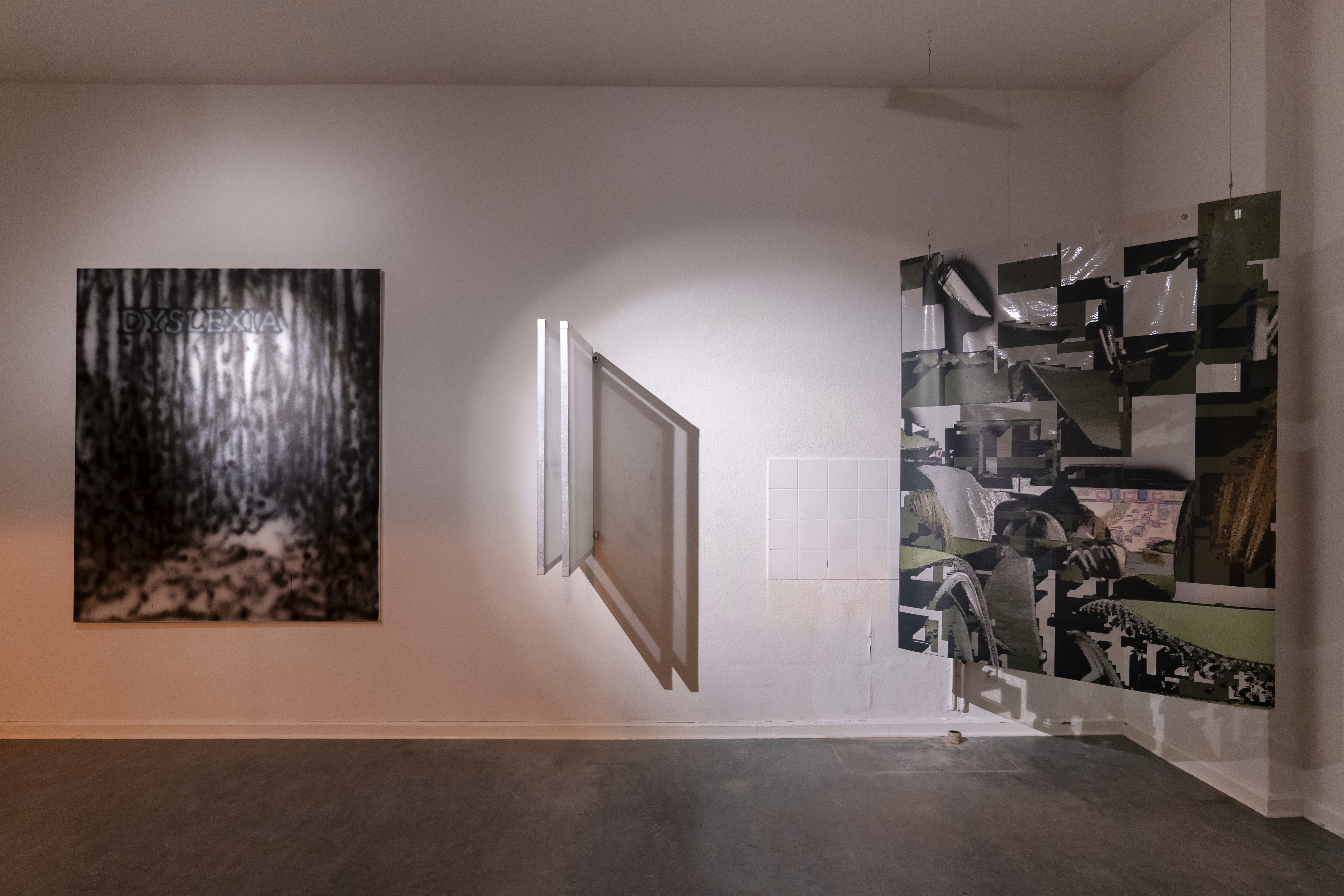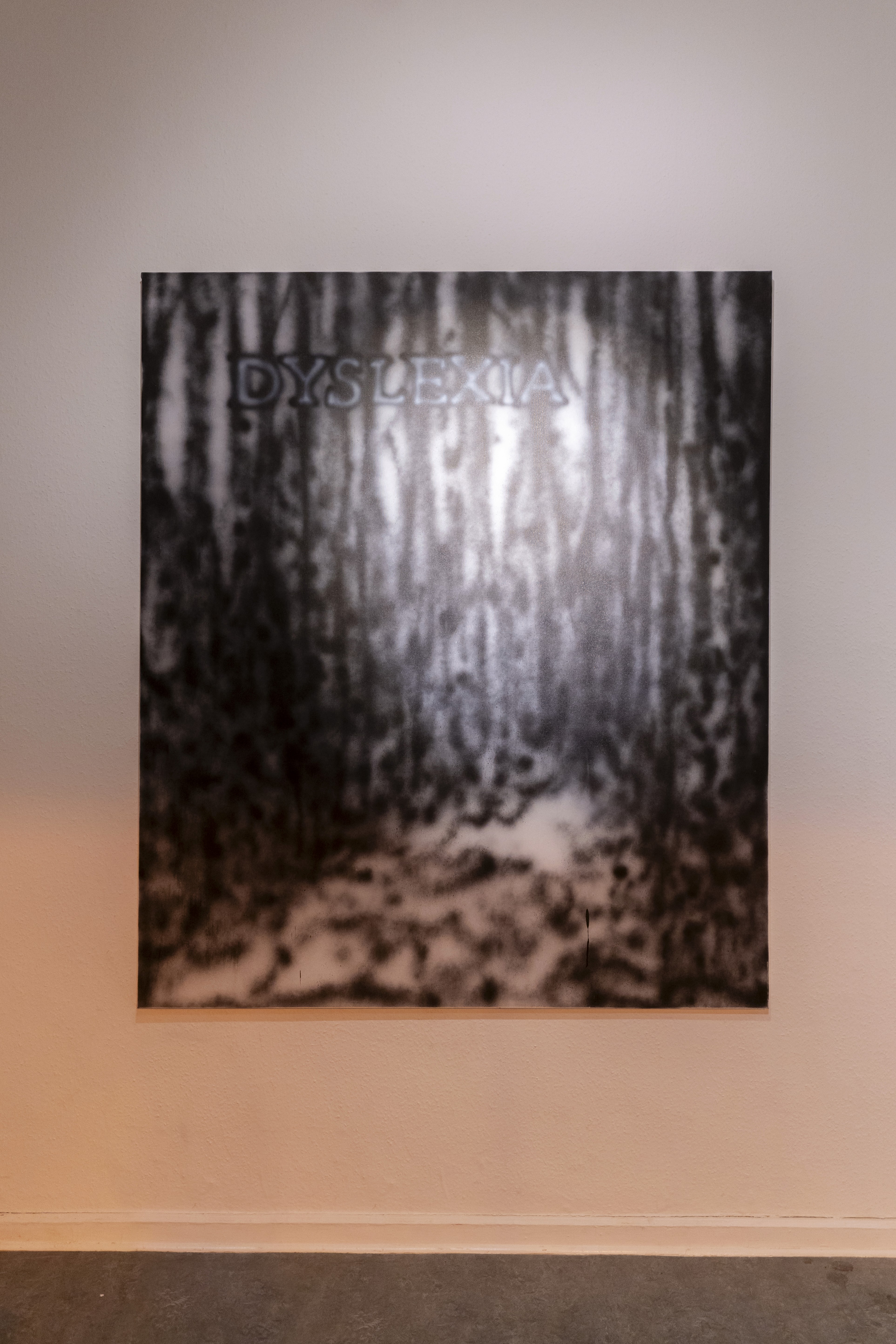 Related to Dyslexia – a condition that affects the processing of information, including seeing, hearing, reading, and writing – the Danish painter fjorsk addresses this specific difficulty through an immersive, blurred painting style, incorporating non-colors and language. His works explore mythology in contemporary culture as a mirror of ideology, today often in form of memes. The meme is, like the myth, an image – often combined with text –, detached from its original context, becoming unquestioned. The images and texts in fjorsk’s paintings are fragmented, reassembled and re-contextualized – stripping them of their original meaning and opening up a new, expanded space for interpretation. His opaque style of reusing images invites viewers to reconsider the overwhelming amount of unquestioned information we encounter every day in our digital culture.