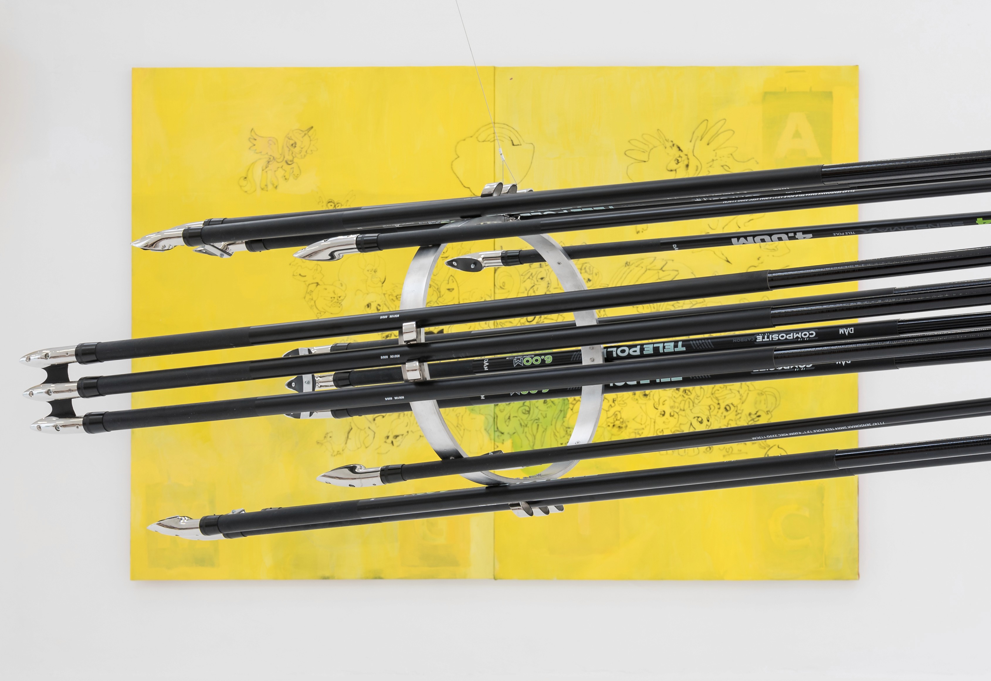El díptico Magic de Jorge Morocho fusiona un boceto de My Little Pony con la palabra «mágica» realizada en stencil sobre bolsas de papel, reflexionando sobre memoria generacional, transformación del objeto y fugacidad de las tendencias visuales.