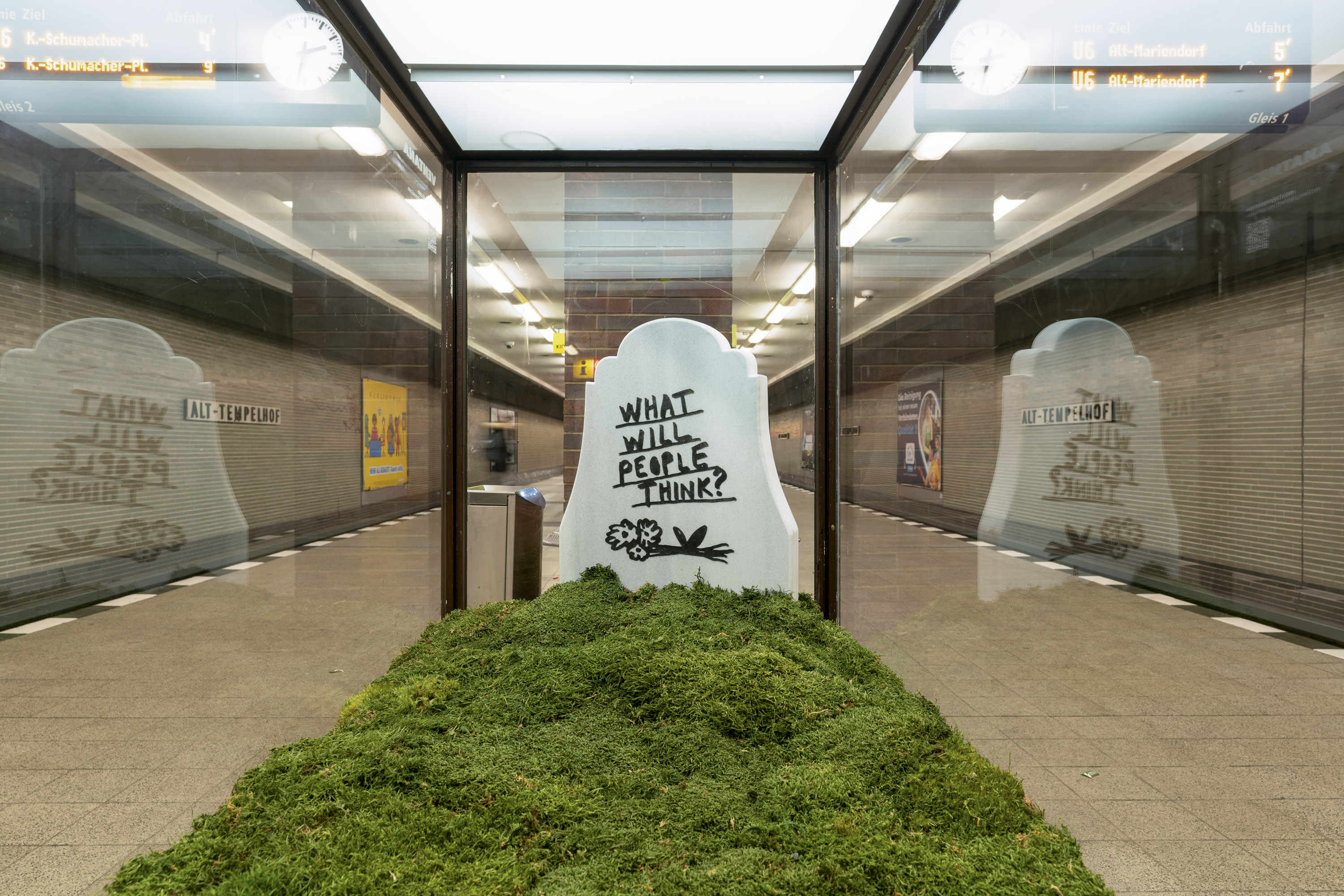 What Will People Think? is a work by Esra Gülmen that accrues greater intensity and is amplified when situated within public spaces, such as, in this instance, the Berlin subway.